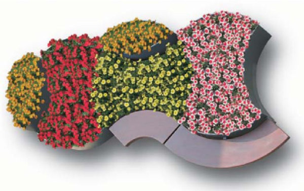 Ez a népszerű Flò virágtartó szett lehetővé teszi, hogy bármikor egyedi formát hozzon létre, amely tökéletesen illeszkedik a környezethez. Tetszőleges számú pad is hozzáadható a szetthez. Bevásárlóközpontokba, közterekbe, kültéri és beltéri használatra alkalmas. A Flò virágtartót különböző méretekben kínáljuk.